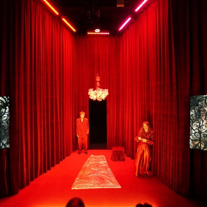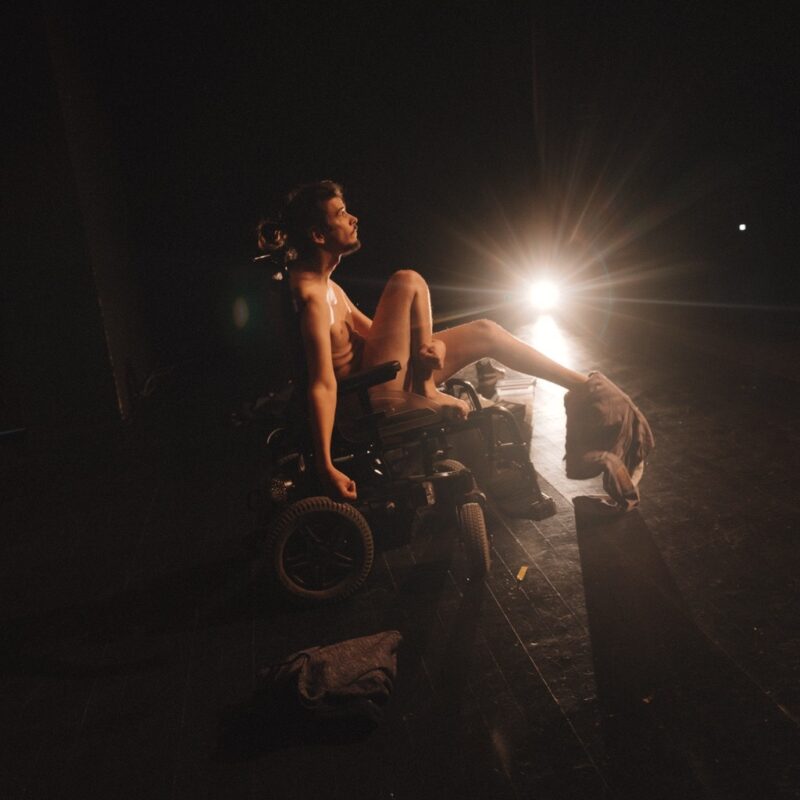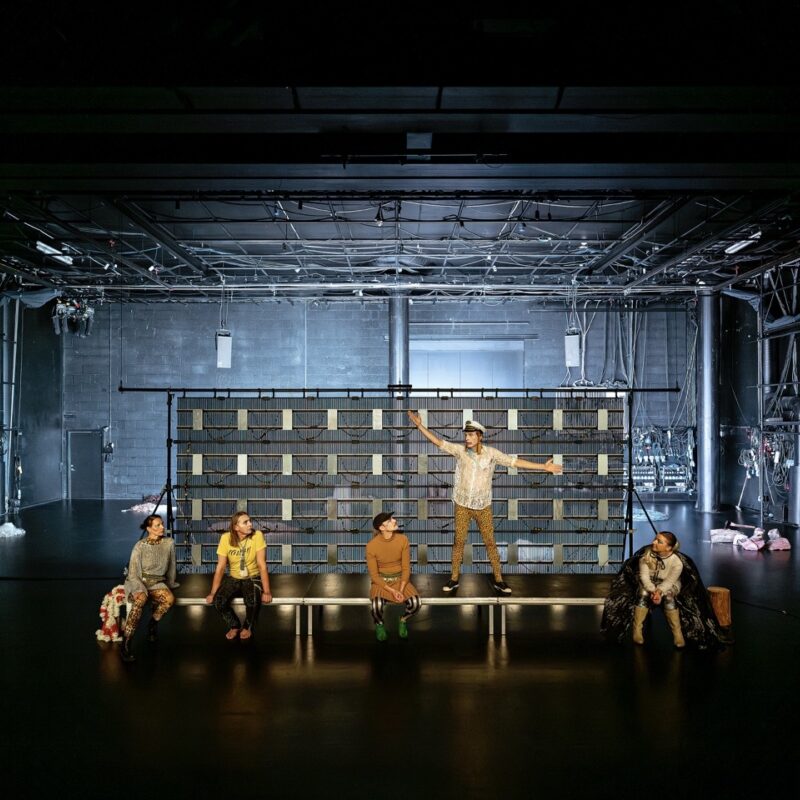 In gone here (yet) to come, the theatre space becomes a canvas onto which different realities are projected. The performance molds and sculpts the space and the air that fills it. It transforms time. It highlights what lies outside of this space: its margins and edges, and what pours in through the cracks and holes in the boundaries that define it. Digging, deeper and deeper, into the space and the time of the theater, gone here (yet) to come excavates lost memories. (g)hosts guide the audience on a journey, revealing other versions or dimensions of the world as we know it.