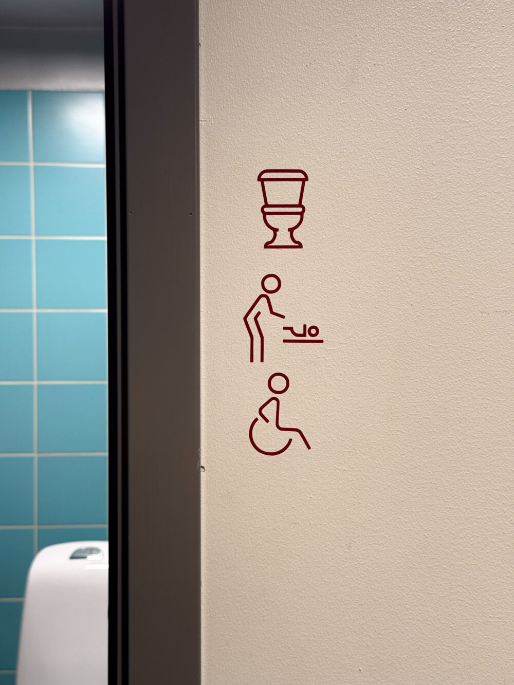 Vi har et tilgjengelig toalett inkludert stellerom for barn i kjelleren under kafeen. Hit kommer du via trapper i kafeen og foajeen, eller heisen i nybygget. Døren til dette tilgjengelige toalettet er 93 cm bred. Det tilgjengelige toalettet kan brukes av alle kjønn. I tillegg har vi toalettfasiliteter for personer som ikke identifiserer seg som kvinne, med pissoarer og toalettbåser, og toalettfasiliteter for personer som ikke identifiserer seg som menn, med toalettbåser.